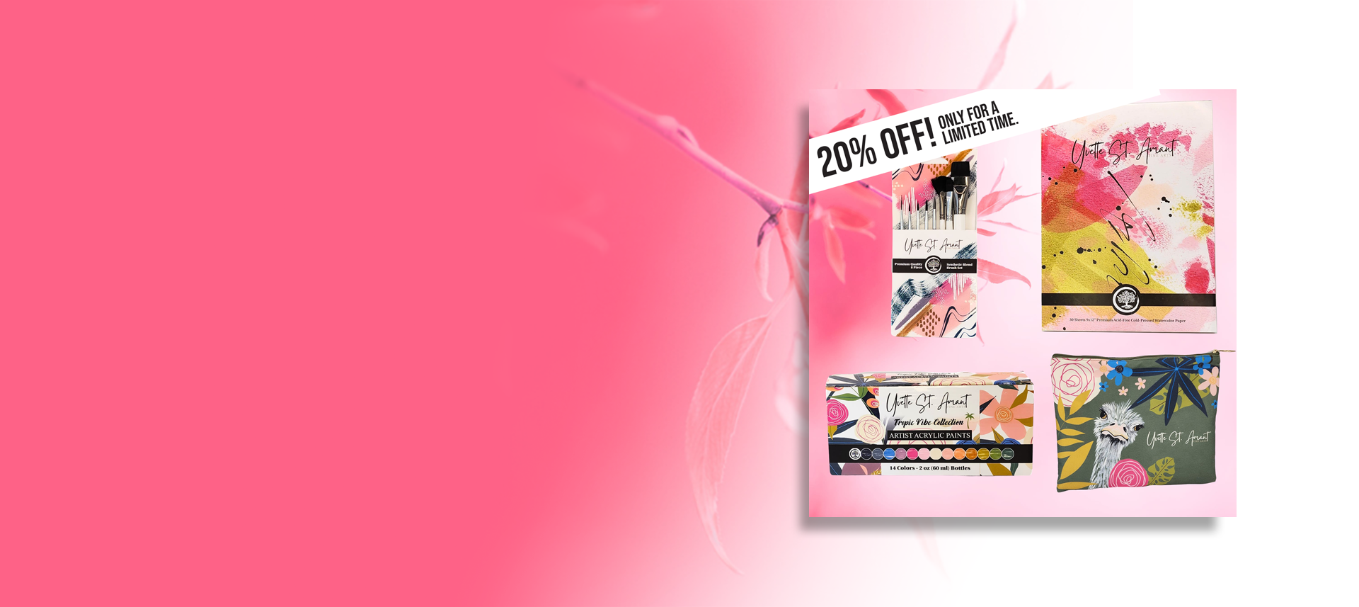 Specially curated by Yvette, this package includes her Tropic VIbe paint collection, featuring 14 colors in 60ml bottles, her preferred brushes and high quality watercolor paper to get you going!